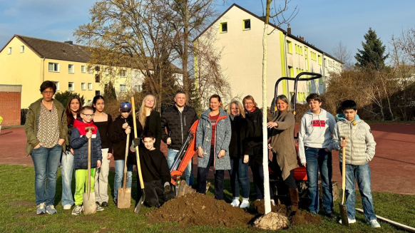 Am 20. März 2026 wurden auf unserem Schulhof drei neue Bäume gepflanzt: zwei Rotahorne und eine Europäische Hopfenbuche.